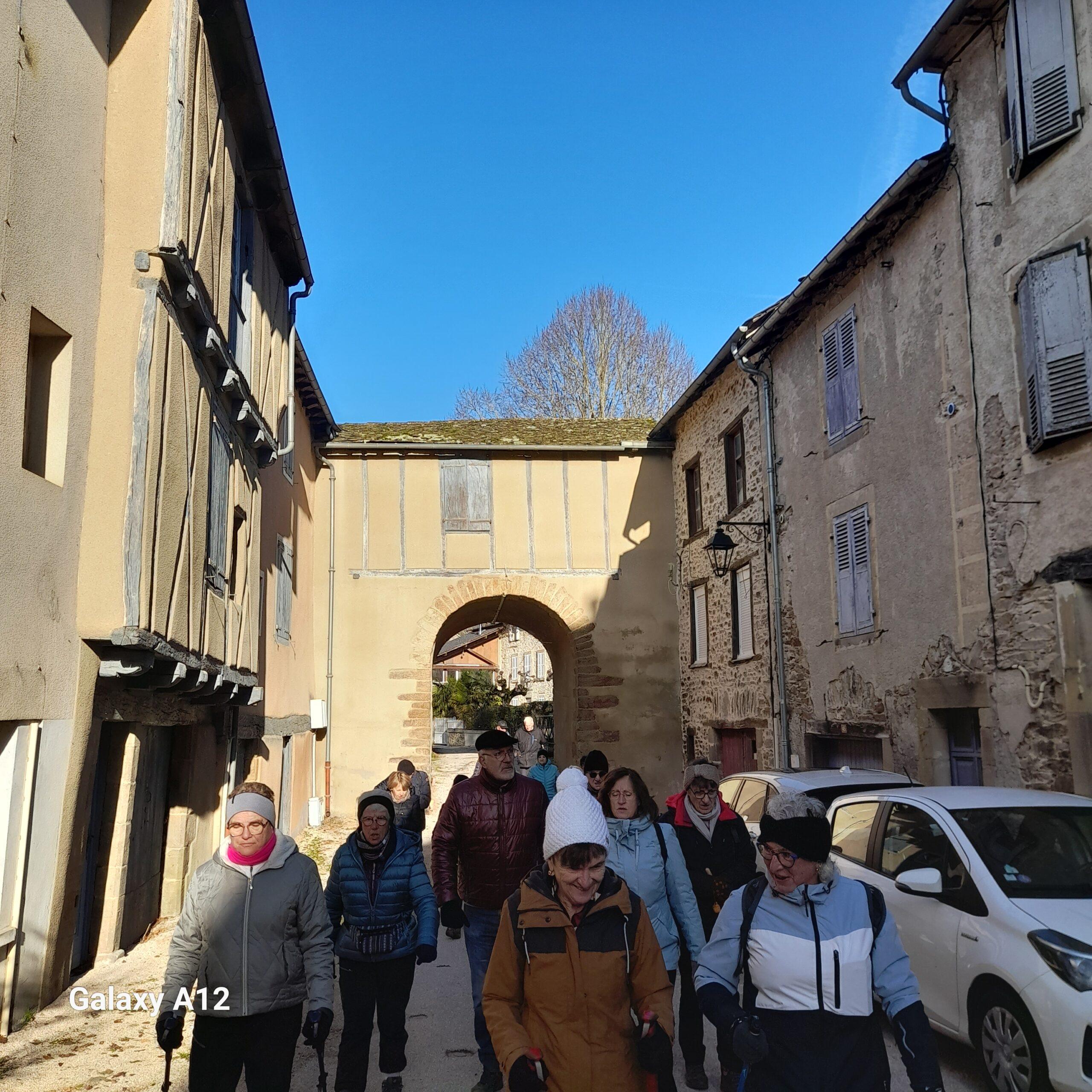 Avant le départ pour la randonnée « du ruisseau de Lauras » nous nous devons de faire le tour du village riche d’un important patrimoine : four à pain, héritage de la révolution, fontaine, château admirablement rénové mais aujourd’hui privé et sans oublier l’église St Jacques édifice du XV ème siècle (bâtie par le Chapitre Cathédrale de Rodez sur les ruines d’une ancienne église romane) avec son tympan classé représentant le Christ dans la mandole entouré de 4 évangélistes et six apôtres, une piscine liturgique. Nous remarquons aussi de belles maisons en pierre très bien restaurées.