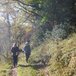 Notre chemin se poursuit entre des prairies puis dans une grande châtaigneraie où les bogues d’un vert tendre commencent à tomber libérant leurs fruits luisants si appétissants qu’ils retardent un peu l’avancée du groupe.