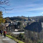 Direction, le chemin de Canteserp qui les conduit à la ferme de Puech Camp commune d’Olemps pour rejoindre le lotissement de La Marquise commune du Monastère où là leurs regards se tournent vers Rodez. Ils découvrent un ensemble de cette ville, avec notamment l’église Saint Amans et une énorme silhouette grise, rose ou flamboyante selon la couleur du ciel qui n’est autre que la majestueuse cathédrale de Rodez.